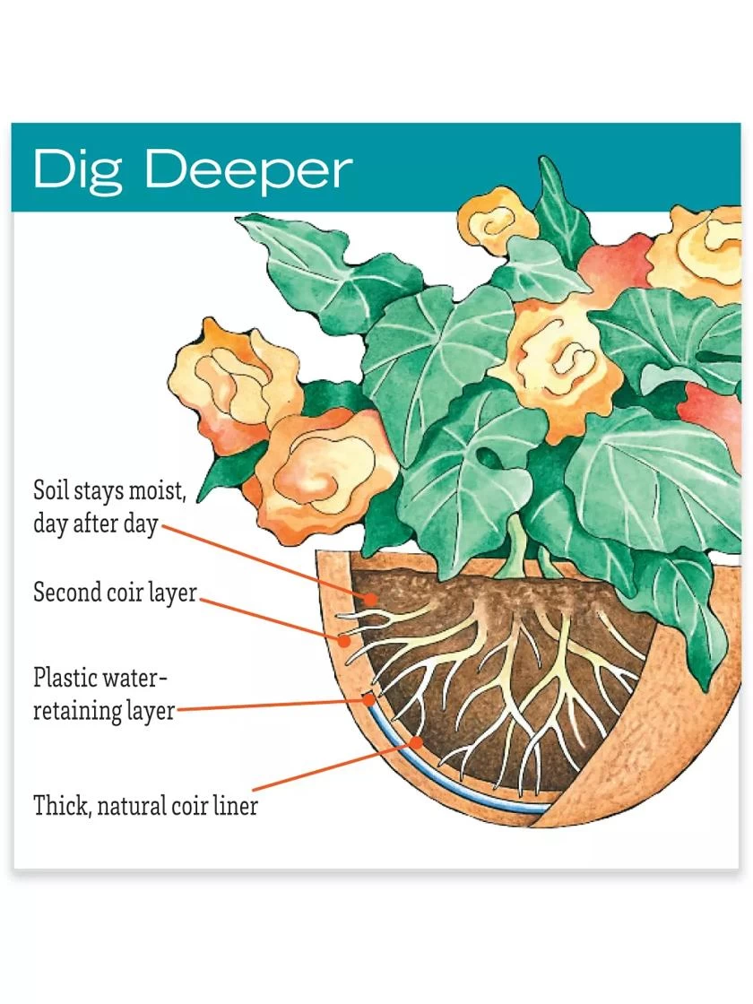 - Liner is natural coir with 100% post-consumer recycled plastic layer