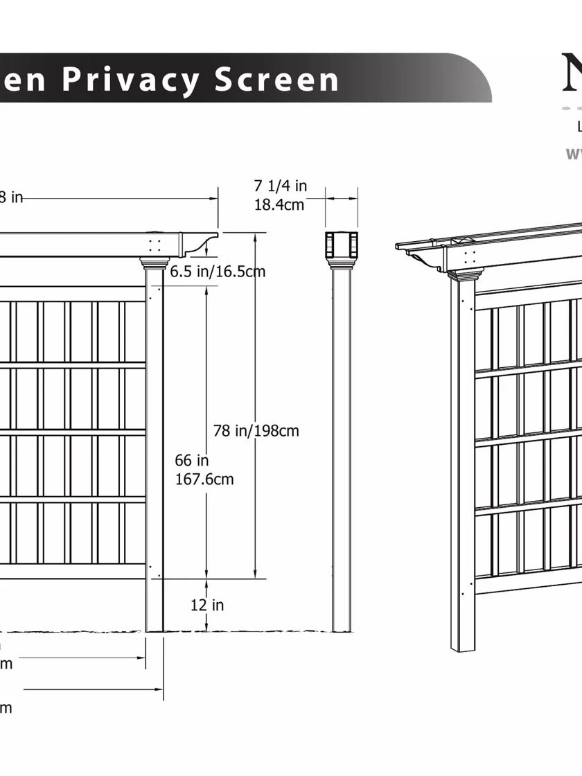 You’ll be impressed by the Camden Vinyl Privacy Screen – nearly eight feet high and over six feet wide! A great choice for displaying prized climbers while providing privacy, shade and beauty in your yard. This well-proportioned stand-alone trellis provides 48 separate cells for your roses, clematis or honeysuckle to grow and thrive. Depending on screen placement plants can enjoy sunshine from both sides! NOTE: Extra materials are required to properly install your Camden Privacy Screen! Required: a 4″ x 4″ x 6″ wood pressure-treated wood post (cut in two – 36” lengths). Ships in two boxes. Posts are 4” x 4”.
