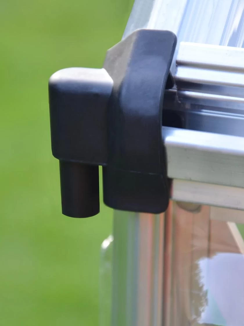 - Includes –2 large adjustable vent windowsfor great ventilation, galvanised steel perimeter base for additional stability & alignment and a friendly magnetic door catch to keep the greenhouse open