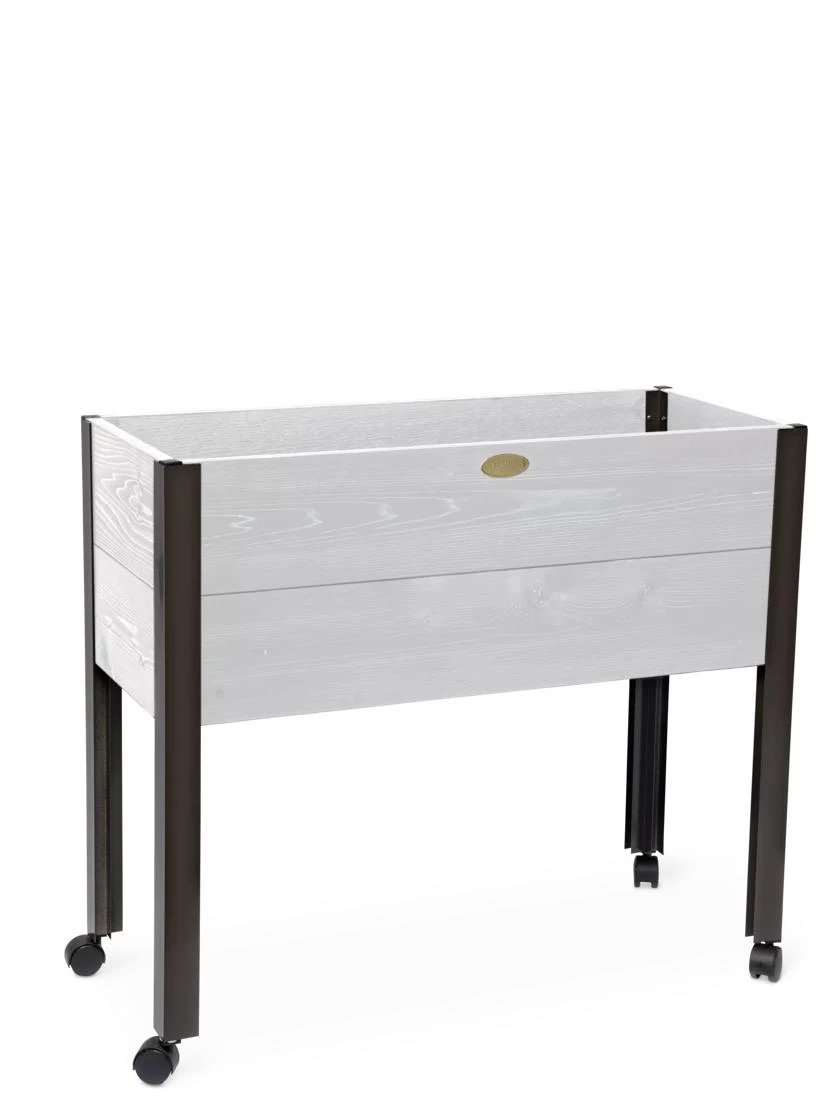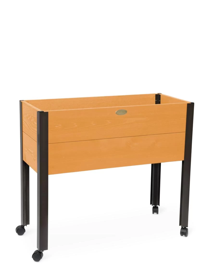 Grow an abundance of food and flowers in a compact space. This lovely planter box is made of rot-resistant wood, coated with eco-friendly, food-safe PolyWhey® stain. It features our signature lifetime aluminum legs, and casters make it easy to roll around on your deck or patio. With a 10.5″ planting depth, this garden box is perfect for herbs, veggies, edible flowers, or an entire salsa garden. No-bend gardening is easier on your back and knees, and you’ll have fewer weeds to deal with too!Â