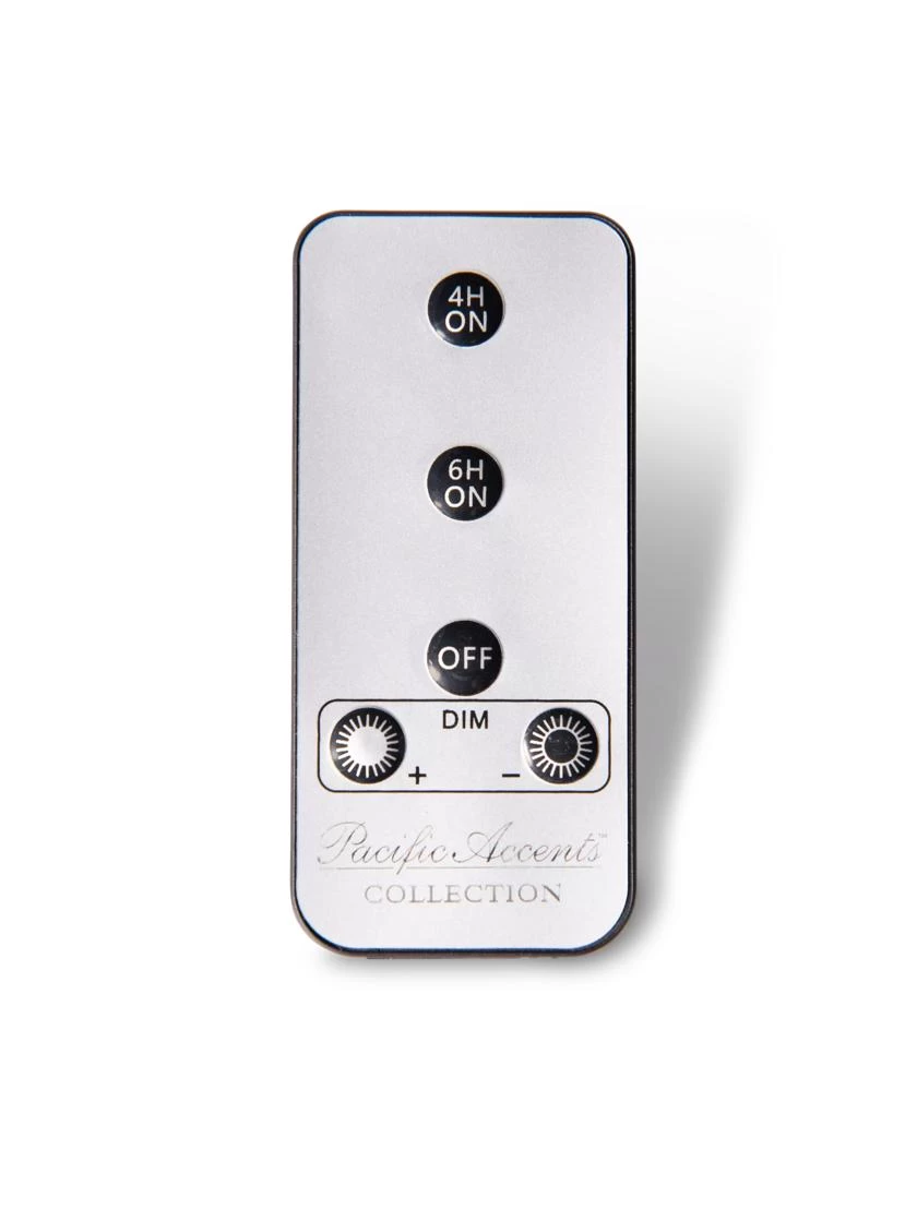 Includes a remote control with 4 and 6 hour timers, dimming function, and manual off. A hanging hook containing the light’s battery compartment allows for a wide variety of decorating possibilities. Light requires 4 AA batteries (not included). Remote requires 1 CR2025 battery (included).